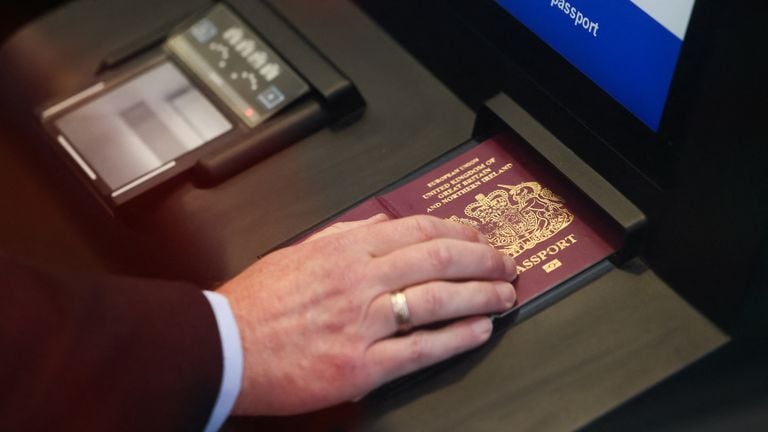 Scansione del passaporto in uno sportello automatico o con l’assistenza di un agente.